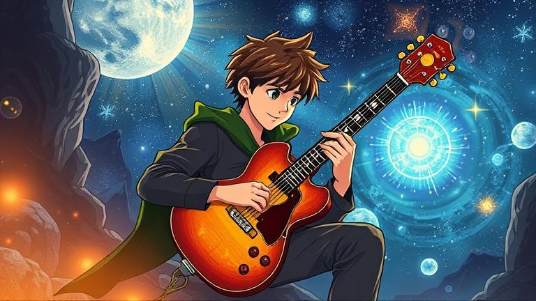 Once upon a time, in the vibrant country of Harmonia, Johan, a gifted yet modest musician, discovered a mystical guitar hidden inside an ancient oak tree while exploring the enchanted Whispering Woods. The moment he strummed a chord, an ethereal melody filled the air, causing flowers to bloom and a gentle breeze to swirl around him. ‘This guitar… it feels alive,’ Johan whispered in awe, the strings shimmering with celestial light.