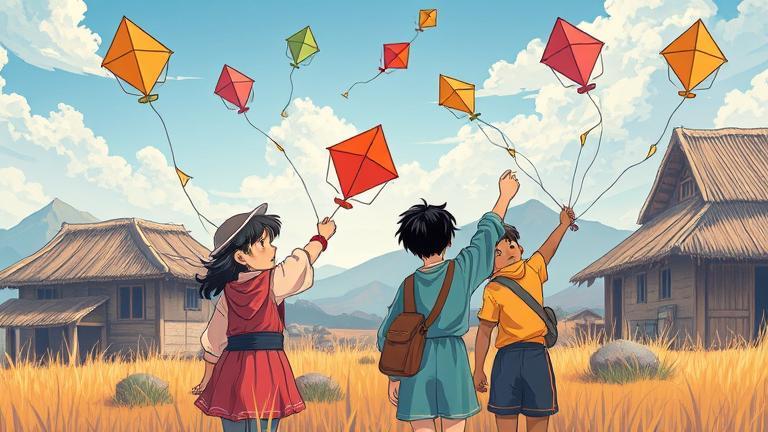 Encouraged by his words, more villagers joined in, filling the air with whispers of dreams yet to be realized. Lila took her place in the center of the gathering, calling for attention, ‘Everyone, let’s express those dreams through our art! Kites! Let each one of them carry the essence of our hopes into the sky.’