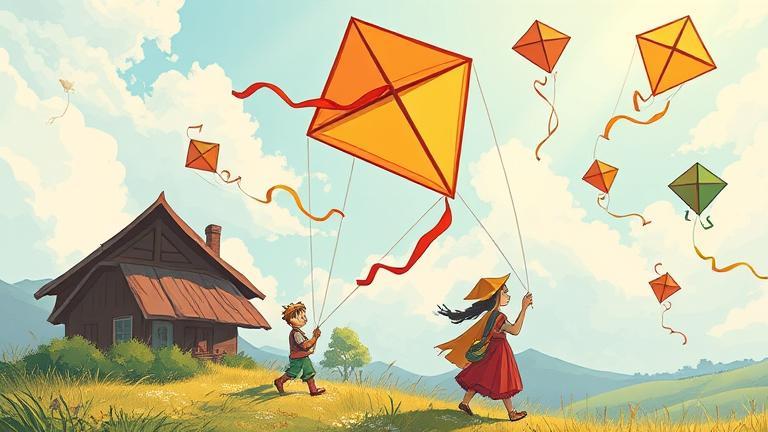 Elara gestured for Zuri to join them, feeling drawn to her cheerful spirit. ‘Let’s fly our kites together!’