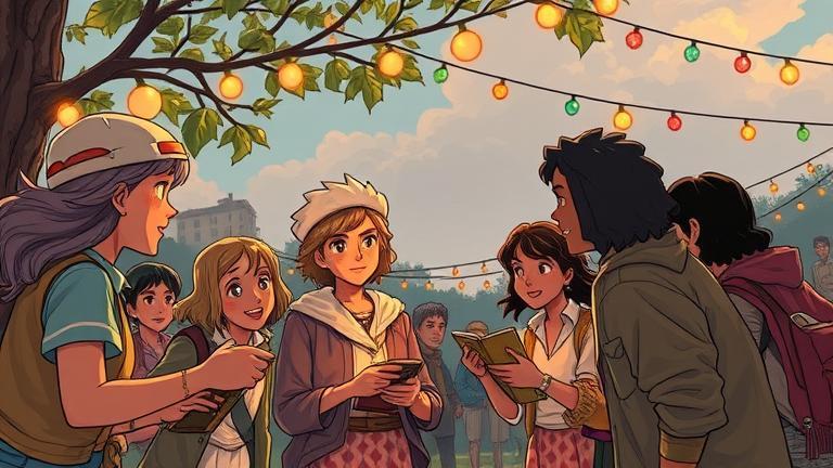 The vibrant marketplace buzzed with energy as friends from different walks of life gathered. Mira and Leo looked around at their companions, each brimming with excitement. When the elderly woman spoke, her voice trembled like the leaves on a gentle breeze. ‘You know, my dear ones, we weave our essences together through our narratives. It’s the magic we share that shapes our destiny.’ ‘Let’s paint our dreams with actions!’ Leo responded, his enthusiasm infectious. The woman’s eyes sparkled, lighting up with intrigue. As stories began to flow, one elder recounted a ancient journey, revealing hidden rivers that healed the wounded earth. Inspired, Mira jumped in, ‘What if we host a lantern festival where each lantern showcases a story shared?” The youth around her gasped at the beauty of her idea. “I can bring some apples and spices for our celebration,” said the cherubic boy with expectant eyes, invigorated by hope. With every propose, the group’s spirits rose, igniting a rainbow of ideas that wrapped around them with warmth. The elderly woman laughed joyfully and declared, ‘We can start right now by creating lanterns!’ They gathered twigs and leaves, allowing each story to guide the colors, all arched toward unity rather than separation. As dusk settled softly over Eldenwood, Mira observed Leo and the elderly woman huddled together. Curiosity stirred within her. Moments later, Leo dashed back to her, excitement hypnotizing him. “The lanterns will tell our stories, shining even brighter than before,” he proclaimed. As they released the lanterns into the night, the night aligned into a dreamscape, each one trailing starlit tales behind them. In full bloom now, Milo and Leo swayed to a melody, their breaths syncing with the rhythm of the universe. When the elderly woman began sharing of a brave knight, their hearts beat faster; reflectiveness pooled between tales of passion and courage. Just then, a wiry bard stepped forth, voice like flowing honey, sharing lost whispers of bravery from forgotten lore. A troupe of children galloped through the clear dusk, infusing everyone with childlike energy as they danced through the air. A vibrant bird took off, fizzling with enchantment, its song complementing the laughter surrounding it. “We should share our vows for the earth, pledging what we cherish!” shouted a spirited girl, bright-eyed and unstoppable. Fuelled by her assertion, Mira stood confidently, bursting with innovation, “Together, we commit to rejuvenate our meadows and plant resilient seeds.” With that pointed clarity, their cheers rang through the shimmering air, echoing like a heartbeat as passion connected every one filled with yearning. Leo raised his voice bravely, “Where you tread, we shall flourish!” The elder lady’s pride glowed in her wide smile, stirring courage in those present. Revelry enveloped them; genuine laughter intertwined with collective dreams ensured their joie de vivre found equal footing with the ache of their cherished earth. As laughter peeled back layers of trepidation, Mira clasped Leo’s hand, assuring him that in unity, they were powerful. The tales carved enduring bonds around them that would bolster their resolve against looming shadows. It was the echo of these shared moments that would lay the foundation of rejuvenation for years to come—each lantern a beacon of hope and unyielding belief, intertwined with love, unity, and communal strength.