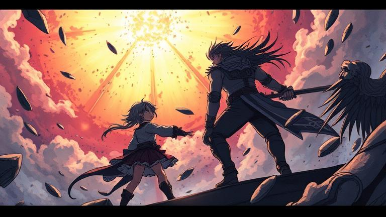 As the first glimmers of morning light painted the horizon, Jolene stepped carefully down the large, spiraling staircase of Dio’s mansion, cradling Dio’s now fragile form in her arms. Yuki darted ahead, her silvery cloak shimmering like a beacon of hope as she rushed to open the front doors. Their path was marked by echoes of betrayal and murky memories, but today was different—a threshold of possibilities lay before them.