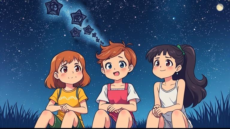 As night took over, they sprawled out on the grass for a stargazing session, with Clara leading the way. ‘Look! That shooting star! Let’s make a wish!’