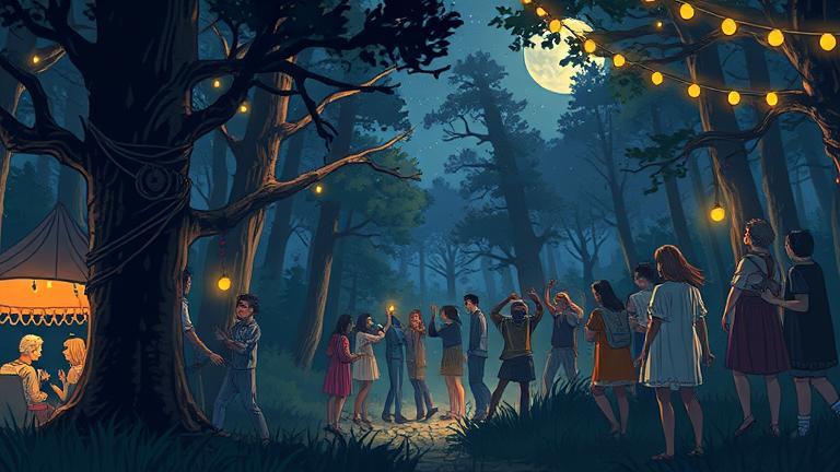As more festival-goers arrived, the clearing buzzed with energy. Children raced around, hands busy crafting wishes with colored paper, while parents gathered wood for the fire. The laughter echoed through the trees, stirring the mysterious shadows that had captivated Karis’s attention since she arrived.