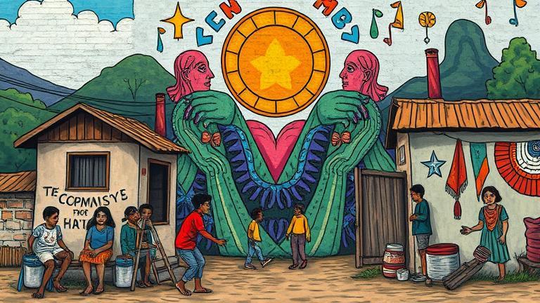 The community began forming connections as small tokens of their dreams clung to the mural. Haru ignited enthusiasm through poetry, reciting verses that echoed virtues of perseverance and love while other hands swept across polished strokes of gratitude towards one another.