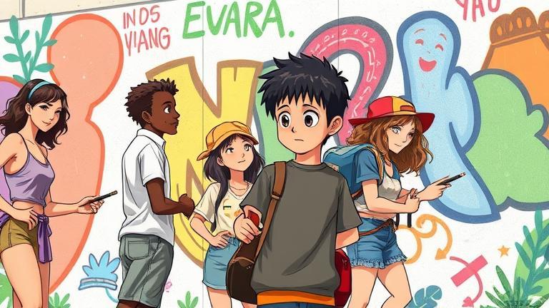 Maya squared her shoulders, ‘No, we’re creating a story—a vibrant one! Want to lend a hand?’ Surprised, the teens stepped closer, intrigued by the vibrant hues.