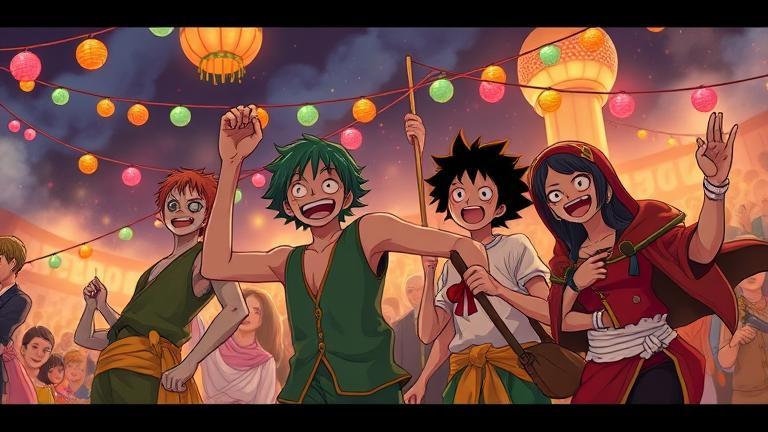 Among bursts of streamers, Nami readied another fizzing popper and ignited flecks of confetti. Robin entwined laughter into her flowers, causing them to bloom in brilliance. The shadow writhed in desperation, crumbling under the joyful assault – snaking itself thinner until it dissipated into harmless smoke.