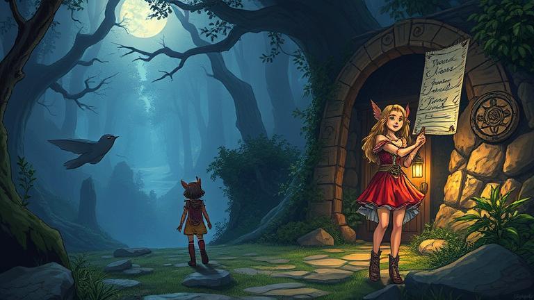 Just then, a rustle in the bushes sent a shiver through the air. Out stepped a small creature with large, inquisitive eyes—a Fey named Pippin. ‘Did someone say amulet? I’ve heard tales of it!’