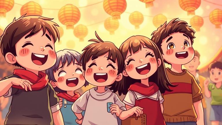Across the festival grounds, Chase looked at Nami, who was orchestrating beautiful twinkling lights above their heads. ‘These lights feel like magic!’ he laughed, snapping a photo of swirling children dancing beneath the enchanting view.