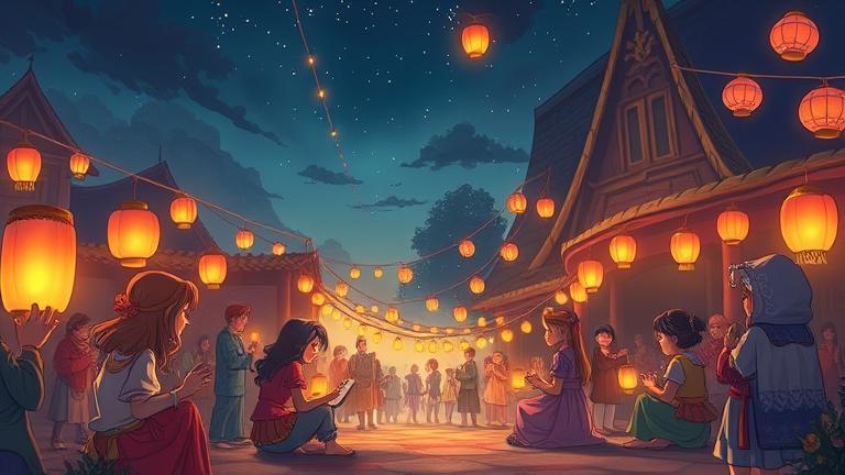 Feeling her spirit entwine with theirs, Lila wept tears of joy. ‘We will cherish you, Mara!’ she cried out, her heart swelling as the lanterns burned even brighter.