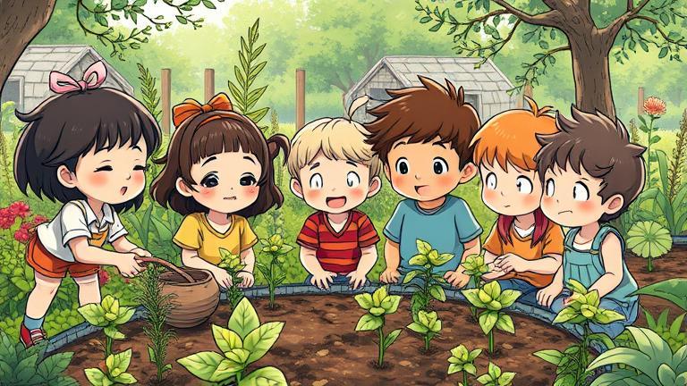 As the sun shone brightly in a blue sky, Mia gathered her friends in a small park corner for their gardening adventure. ‘We need an official name for our garden! Something that reflects our spirit!’ she proposed, her eyes sparkling with excitement.