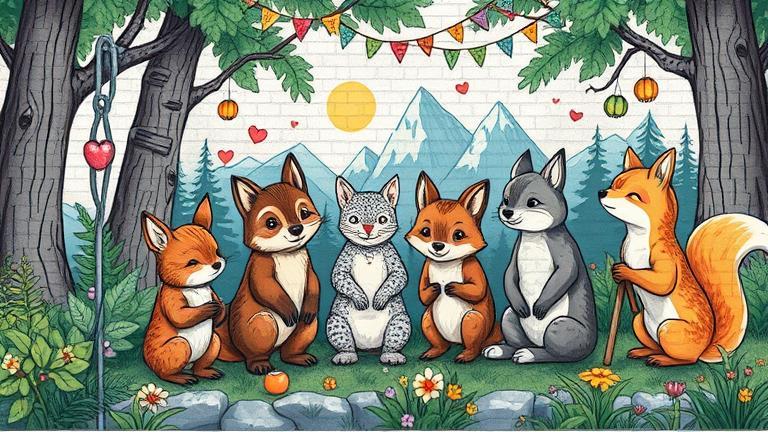 As the evening deepened, food, laughter, and stories blended into one. ‘Tomorrow, I will add more vines to our mural!’ Zephyr exclaimed, ‘It will continue to grow with all our stories through generations!’ At that moment, a feeling of contentment enveloped the woodland, a shared understanding that this mural was not merely a painting but a living testament to their shared journey, forever untethered to just a place in time. It thrived within their hearts, resonating with magic that sprawled through their lively existence.