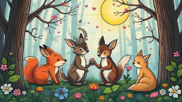 Jena, the spirited host, joined in with contagious energy, stating, “Let’s remember the music, the dancing, and all our dreams that bind us together!” Their excitement rose as Koru, the nimble squirrel navigating the tree trunks, raced down with sprightly enthusiasm. “What about shadows of our future? Each paw, wing, and horn tells a part of our stories!” She animatedly swirled her tiny paws perked high in the air.