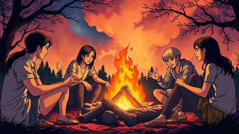 The fire crackled softly, illuminating Amelia’s face as she glanced around at her friends, their expressions reflecting hope and uncertainty.
