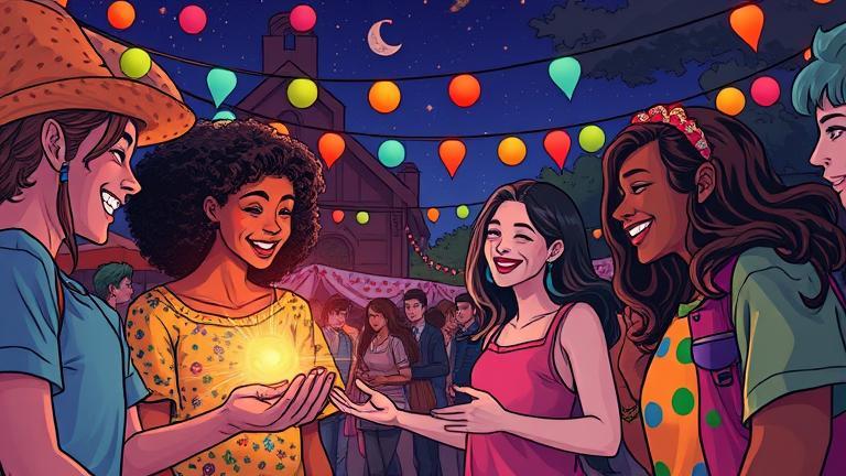 As laughter soared through the air, L glanced at the group, feeling overwhelmed yet proud. Shadowhaven had not just been lit up by colors but by connections that blossomed amid shared struggles. As the vibrant colors of the festival illuminated the night, Amira stepped forward, her eyes reflective of the twinkling fairy lights around them. ‘You know, it’s amazing to see how far we’ve come,’ she said, her voice ringing through the laughter-drenched joy. L nodded, remembering last year’s events, where mistrust clouded the community. ‘We used to be strangers roaming the same streets,’ they replied softly, looking at the parade of colorful floats weaving through the crowd. Each float was a tribute to stories of hardship, resilience, and the desire to connect. At that moment, a soft voice chimed in. Tariq, a local artist who’d spent the past year painting murals, approached them. ‘I was inspired to create a mural about hope, fueled by the stories of everyone I’ve met here. Who knew a place bruised by shadows could produce such art?’ Amira grinned, ‘Show us the mural tomorrow! It’s only fitting to make it part of the festival’s legacy!’ Just then, Lina, a passionate storyteller, rushed over, clutching a notebook filled with ideas. ‘I thought we could hold an open mic tomorrow where people can share their stories! This festival isn’t just for fun; it’s about healing and expressing ourselves.’ L’s heart warmed. Directing their gaze back at the group reveling joyfully, L said, ‘It’s moments like these when I realize how connected we can all be when we open up.’ Suddenly, a distant laugh drew their attention. A group of children ran past them, chasing a stray puppy and leaving trails of colors from the decorated one-shot kits they were using. ‘Even the kids are embracing this spirit!’ L exclaimed, pointing to the scene. As the heat of excitement spun around them, an older gentleman named Mr. Hawthorne, known for his wise anecdotes, interjected. ‘Connection happens when vulnerabilities are shared. You all have the gifts to make that happen this evening!’ L tilted their head in contemplation, ‘We should help facilitate it then—maybe bring together those who’ve faced loss, those who’ve found love, those who have memories of Shadowhaven. What about a communal art-piece honoring our shared stories?’ ‘Count me in!’ Amira beamed enthusiastically, the spark of determination flaring in her eyes. The group began brainstorming under the shimmering lights, tossing out ideas like confetti. Local musicians, poets, and dancers joined in, excited by the realization that this was more than a festival. It was an initiation of healing and unification. As dusk began to lace the sky, L faced the now vast array of colorful faces, a heart filled with optimism for the hours to come. Small clusters of people were forming around tables discussing supplies and themes, and a sense of momentum began to swell. L stepped back slightly, observing the dialogue that sparked anew between neighbors who had previously kept their distances. Just then, Mr. Hawthorne clasped his hands and declared, ‘May our voices blend like the colors of this festival! Let the echoes of our stories light the path ahead.’ Everyone cheered, and in that instant, L understood—the night was young, the story was just beginning. Amid the flurry of creativity, Lina proposed a theme: ‘Stories of Shadows and Light.’ Everyone nodded in agreement, feeling a rush of inspiration. Each artist committed to weaving their tale into the larger tapestry. Tariq began sketching on a large canvas, sharing snippets of stories from others. His paintbrush danced, creating images of hope and resilience. Amira gathered musicians who agreed to play harmonies that would complement the spoken word. ‘Let’s tell tales that encompass our joys and tribulations,’ she encouraged. L kept the pulse of the gathering, reminding everyone to listen—truly listen—as a new dialogue emerged. Encouraged, people began to share snippets of heartache and triumph, small legs of the journey they had down. The marvelous cacophony of stories made the air feel thick with understanding. As the lanterns began to glow brighter, the festival transformed from a simple celebration to a healing space. Each whisper and echo became a thread in their shared narrative, binding them closer together than they had ever been before. Stories flew over heads and connected with hearts, lifting them high into the sky where they shimmered alongside the stars. The festival had blossomed an entirely new meaning by the time ashes fell. When the last firework exploded into the night, L stood, heart brimming as they knew—what had started as mere colors would be etched into the community’s foundation for generations.