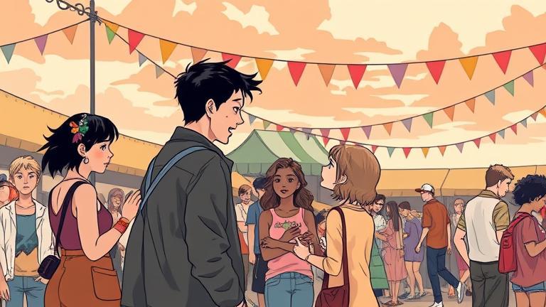 The celebration continued well into the night, with laughter echoing like the distant sound of music carried by the breeze. Moments later, Nora wiped her brow, looking at the gathered group with renewed hope. ‘We’ll create a story together! A shared canvas, if you will,’ she proclaimed, capturing the attention of every attendee. ‘Each person will contribute a piece, one brushstroke representing your unique story.’