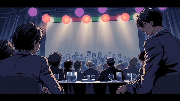 Without warning, a loud crash resonated from the back of the hall, causing heads to turn. L instinctively narrowed his focus, his heart racing.