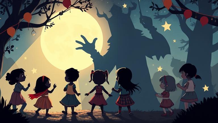 As the festival transformed into a swirling tapestry of colors, a new character emerged from the crowd. Leo, a tall boy known for his storytelling, approached the group with twinkling eyes. ‘What if our shadows had tales to tell? Let’s give them voices!’ he suggested enthusiastically. The children, ever eager to spark their imaginations, gasped at the idea. ‘We can create adventures for our shadows!’ shouted Mia, her face leaning toward excitement. ‘I can be a shadow fairy who helps them find light!’ Chase ruffled his hair playfully. ‘How about I animate our shadows? Watch out, or they’ll come to life!’ He waved his hands theatrically as if conjuring magic. The group erupted in laughter, each thinking of their shadow characters. Nami raised her hand and declared, ‘I want to be the shadow baker who crafts cakes for the shadows who feel sad!’ Her innovative spirit ignited stories of kindness. Marco leaped forward, declaring, ‘And I’ll be the shadow pirate, sailing the seas of darkness, searching for lost treasures of dreams!’ His animated hands mimicked a steering wheel, taking everyone on an imaginary journey. Jin chimed in eagerly, ‘I’ll craft a shadow wizard, full of enchanting riddles that make even the bravest shadows giggle.’ His response filled the group with unyielding joy, weaving more ideas into their growing tale. Inflated with creativity, they started to assemble a fantastical play. Mia suggested, ‘Let’s dance our shadows onto the ground, making them do funny movements as we narrate!’ They danced while narrating the tales, seeing the lively silhouettes playfully swaying behind them. As they spun and frolicked, each child’s lantern flickered brighter, lighting up their heart stories. Lily, filled with candor, narrated, ‘And the shadow pirates encounter the fearsome dragon of doubt! But together, they bolden their spirits and bring home the glimmers of courage.’ Everyone battered ‘the dragon’ with imaginary weapons of laughter and joy. It vanished with a booming giggle, leaving echoes of wonder in its place. Suddenly, a new sound filled the sky, as the old man had set up a little area for magical storytelling. ‘Gather around, brave souls! Every shadow you danced upon today tells the tales of triumph over fear!’ he announced. The children rushed to him, forming a semicircle, captivated by his wise gaze. ‘This journey of creation binds your spirits as bright as the lanterns you’ve made.’ The man’s voice resonated with warmth, wrapping around their hearts like a familiar hug. Inspired, Chase realized they could carve their shadow tales into their lanterns. ‘Each story we tell becomes a part of our shining lights!’ he shared, eyes sparkling under the wisps of evening trails. With determination, they took turns sharing more woven tales, each punctuated by joy and laughter. They expanded on their characters, creating new allies in fantastic journeys through light and shadow. Suddenly, the atmosphere thickened, as if charged with magical energy. They held hands tightly, creating a sturdy circle, charging the air with their united creativity. Jin counted, ‘One… two… three! Shadows grow weaker with laughter!’ The children erupted in a synchronized cheer, lifting their lanterns high. ‘Shadows of the night, behold! We bring hope and joy!’ they called, a flock chorus sounding like a vibrant symphony. The old man beamed with pride, nodding approvingly. ‘There’s a lesson waiting for you, dear children. Shadows flee where brightness and courage dwell. You own that power! Remember it always.’ This wisdom infused newfound strength in the children’s hearts, brightening their spirits further. The vibrations of energy felt palpable, resonating through each child’s laughter. ‘Let’s make our performance a tradition!’ suggested Marco, igniting a flame of aspiration among them. ‘Every year, we’ll celebrate shadows and friendships!’ A round of agreements followed, binding them even closer. In agreement, whispers of promises filled the air, each heart agreeing to return, together, to partake in this festival of unity and joy. As the festival wound down, their lanterns floated like dreams towards the skies, each flickering in the night – a phantom of their excitement and hope. With souls aglow and bubbled laughter floating in the nighttime air, they smiled at one another. This festival of stories would be cherished for years to come, a heartbeat of unbreakable friendship weaving together their unique experiences. With final hugs and promises exchanged, the festival came to a tender close. They struck an everlasting chord written in the sky, anchored in their hearts – shadows meeting joy in the delight of light.
