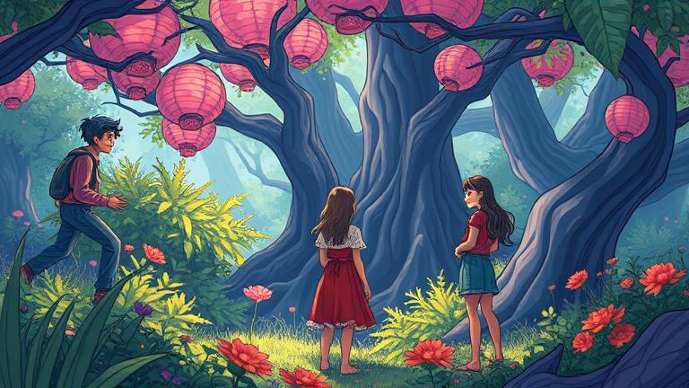 Elara waved her sketchbook, marveling at their surroundings. ‘It feels surreal here, like every leaf tells a story of its own. I want to capture these moments.’